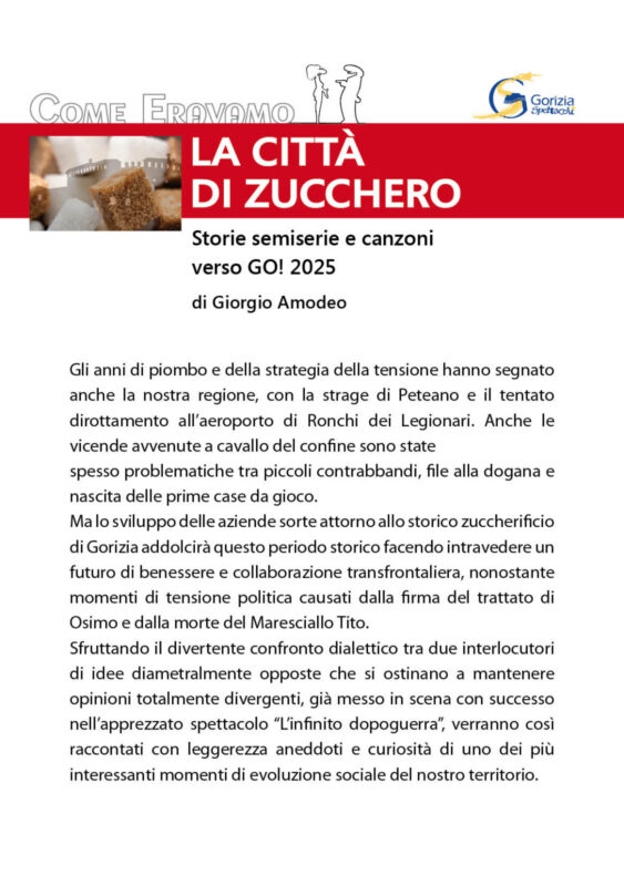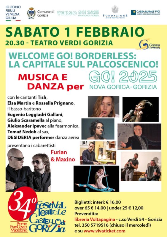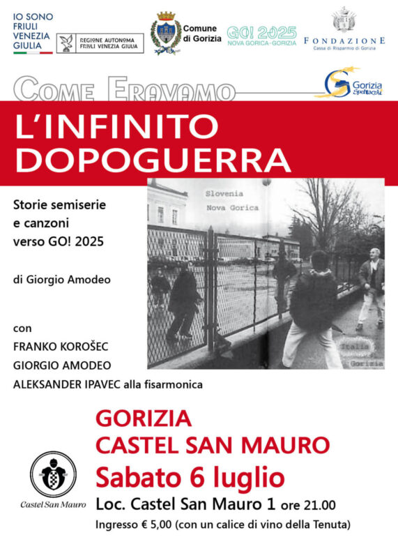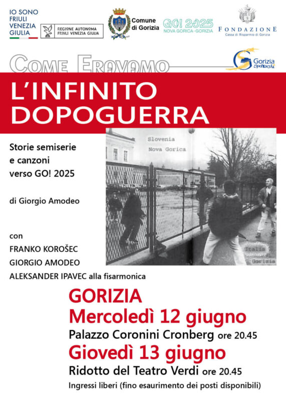 Con l’iniziativa “Dal confine a GO! 2025, il lungo viaggio di due città” si è pensato di far rivivere l’atmosfera che si respirava nell’area transfrontaliera dalla fine della seconda guerra mondiale ai tempi più recenti. Sono state allestite quattro produzioni ad hoc per raccontare ai più giovani e ai turisti come due città di due mondi opposti abbiano ora uno spirito di integrazione che le porta a procedere assieme anche dopo il 2025. L’iniziativa ha coinvolto attori, musicisti e danzatori del territorio transfrontaliero e non solo, anche giovani under 35, proprio per fornire a quest’ultimi delle occasioni di visibilità e lavoro.